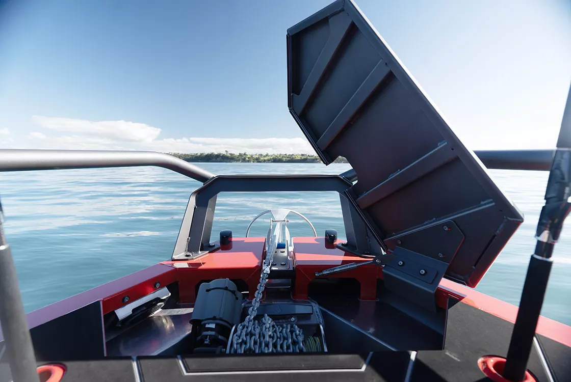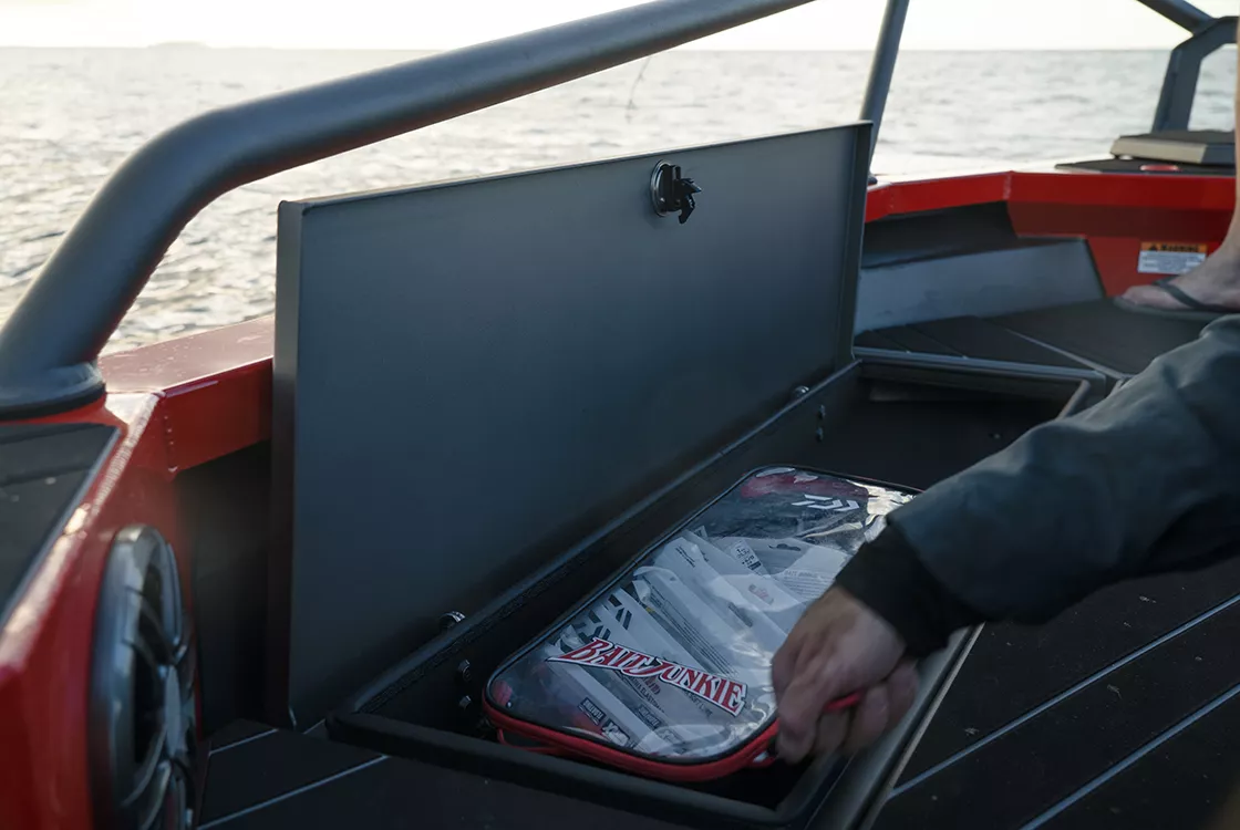 Secure Storage is very important in an open boat so every pocket of the 2050 Frontier is utilized so that not only can you be confident in taking all the gear you need but you also have the peace of mind knowing it will be secure. Each gunnel features a locking door that secures a compartment long enough to store 8ft + rods. The optional bow casting deck opens up on gas struts to reveal a monstrous 600L plus of internal dry storage volume.