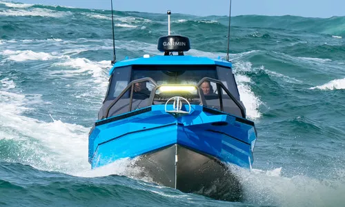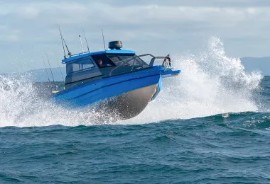 The 2350 Supercab debuts a new hull, which has been subjected to extensive hydrodynamic and on-water testing. Stabicraft has increased the keel angle and tapered the forward sealed chambers upwards, giving a finer entry. This has allowed the hull to better navigate rough water by dispersing the water further back under the hull, allowing a very dry ride.