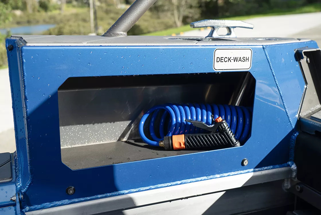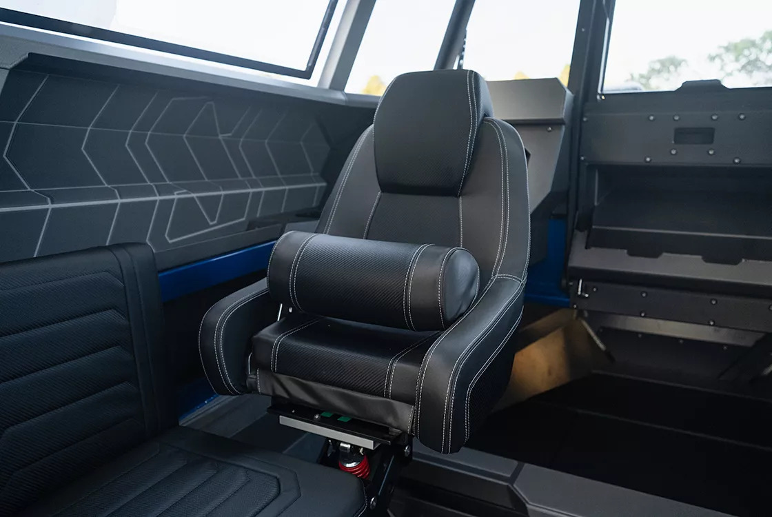 The 2350 Ultracab™ WT features improved interior appointments with a range of furniture options tailored to different usage needs. The default seating is now blade-style, which frees up ample space for additional cargo. Both front seats can be upgraded to heavy-duty mechanical suspension for enhanced comfort. For those seeking overnighting conveniences, the new folding table with port-side saloon seating sits over a cabinet-style fridge, while the starboard side can be converted into a galley with a sink and freshwater supply over a 12V oven. The sleeper seat box options have also been upgraded, with available fridge and electric oven options. Additionally, a rear-facing storage seat option is available—a modern take on the King/Queen configuration—providing a comfortable spot to watch your lures for action.